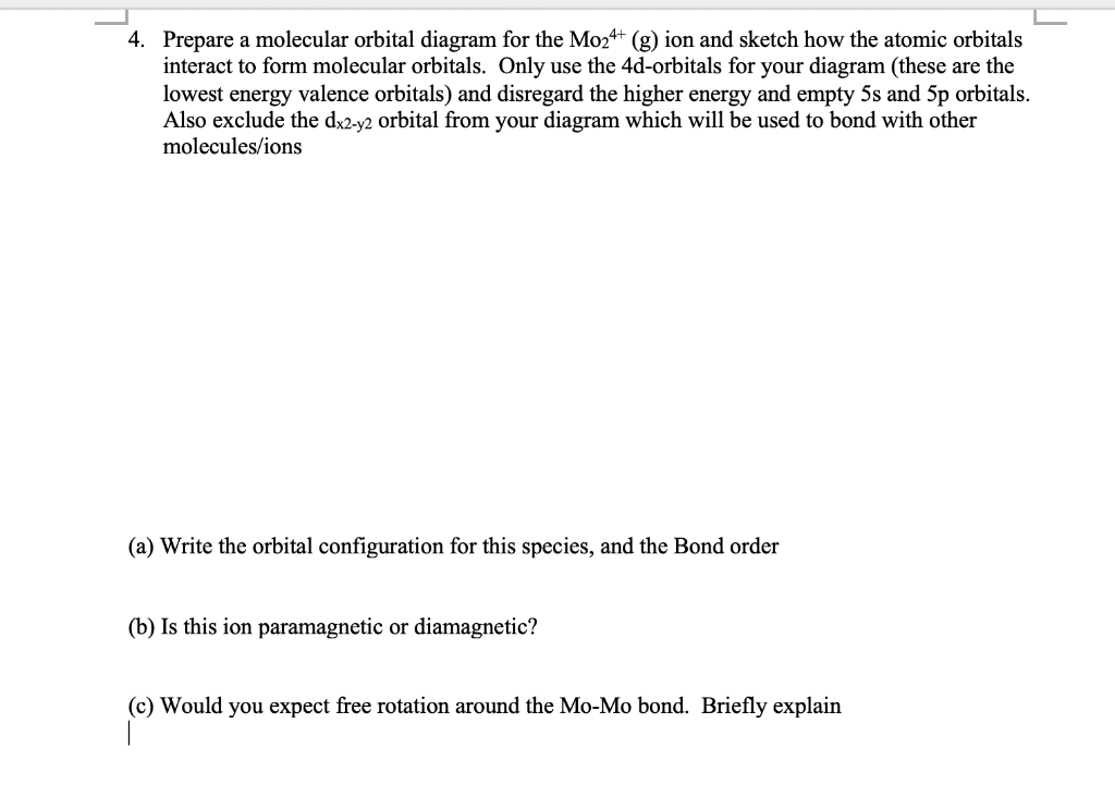 Solved 4 Prepare A Molecular Orbital Diagram For The Mo24 Chegg Com